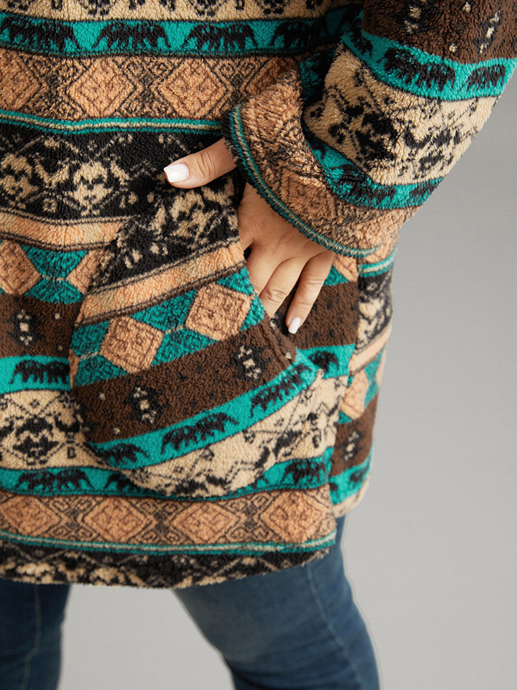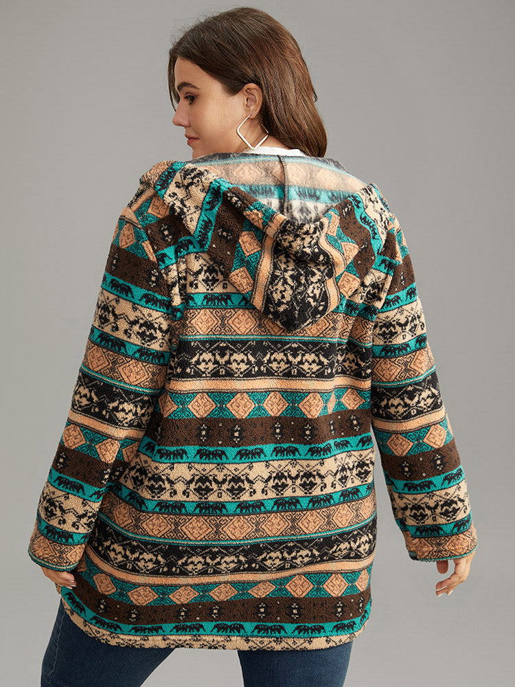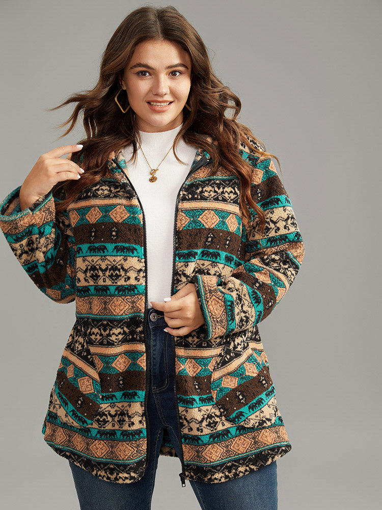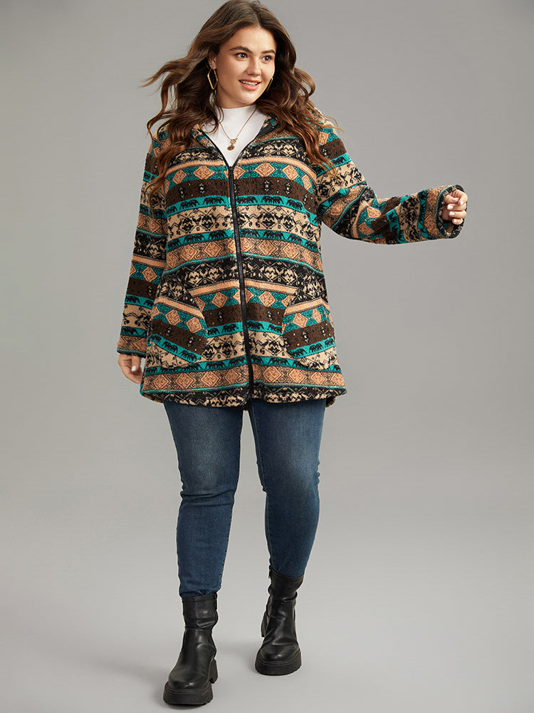 Boho Print Zipper Pocket Hooded Jacket