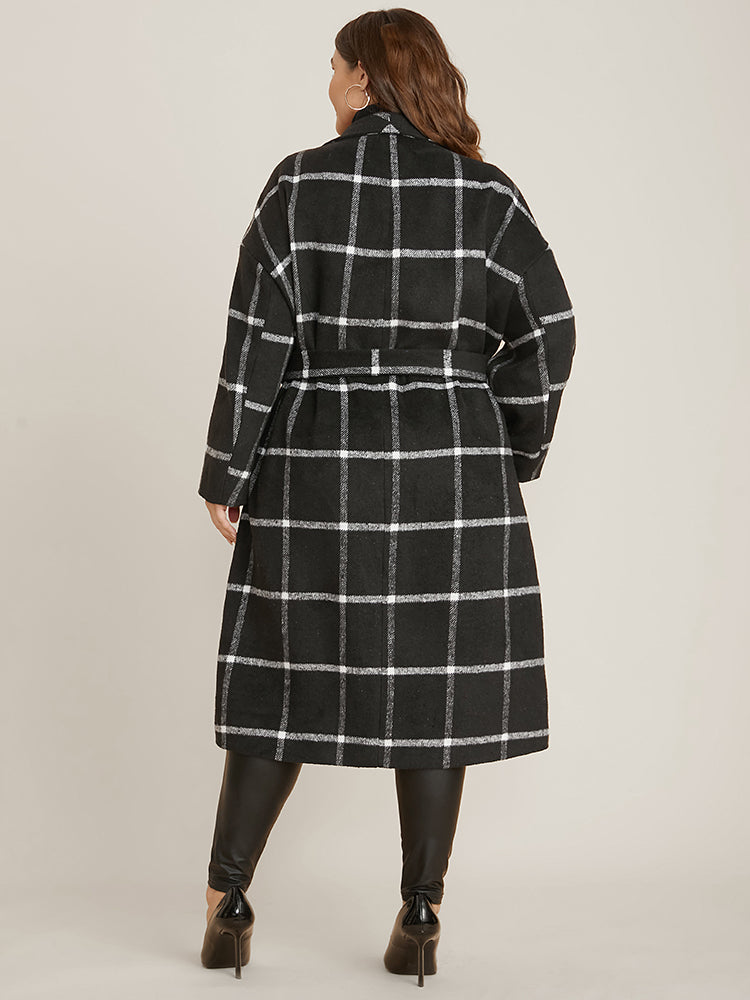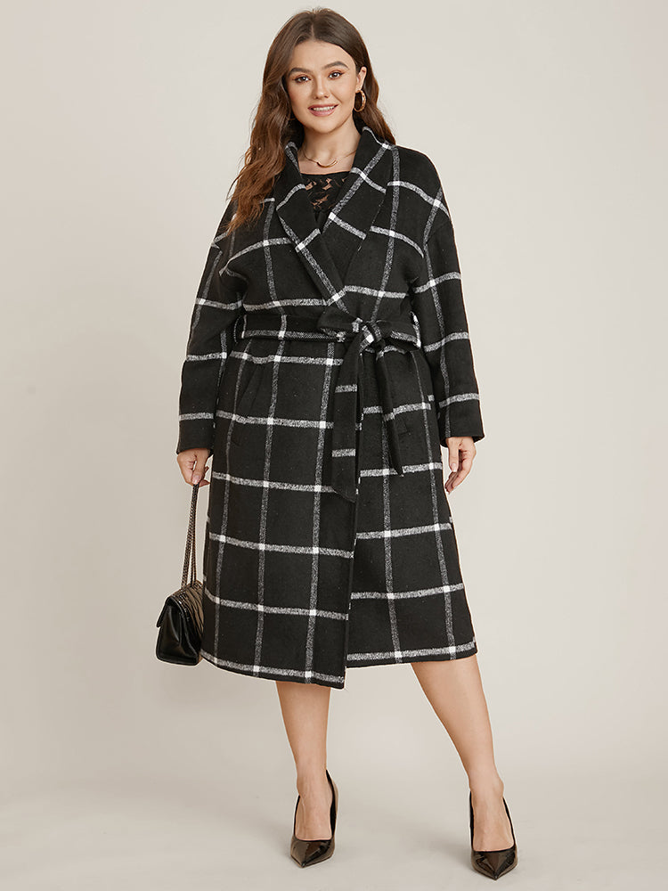 • Plaid Lapel Collar Pocket Belted Open Front Coat