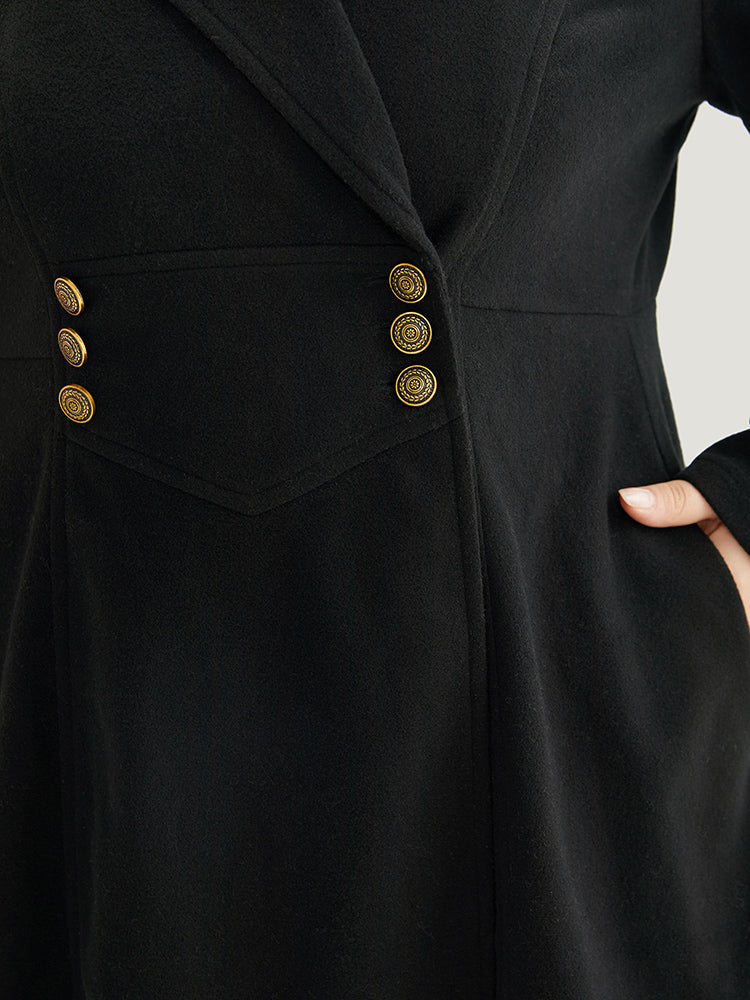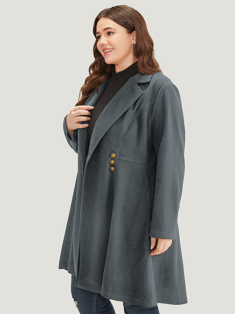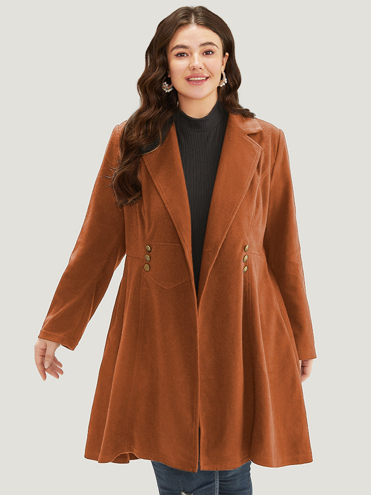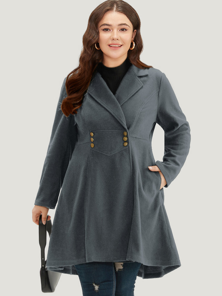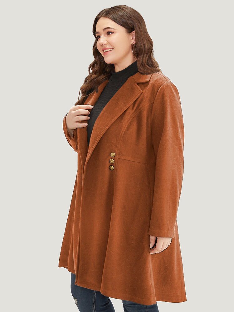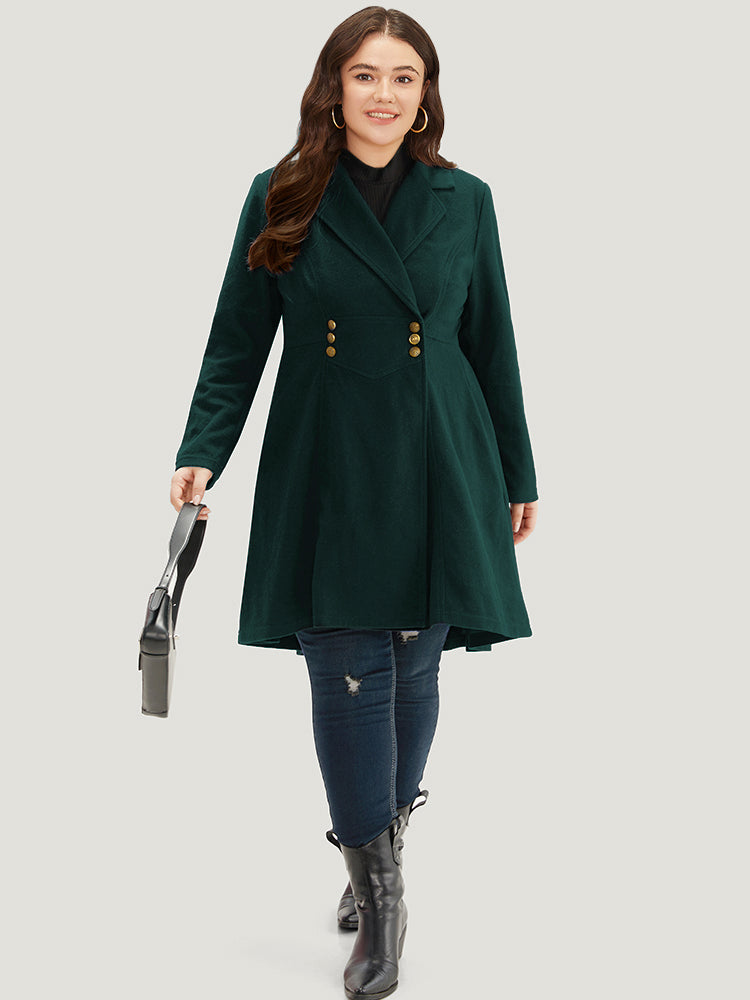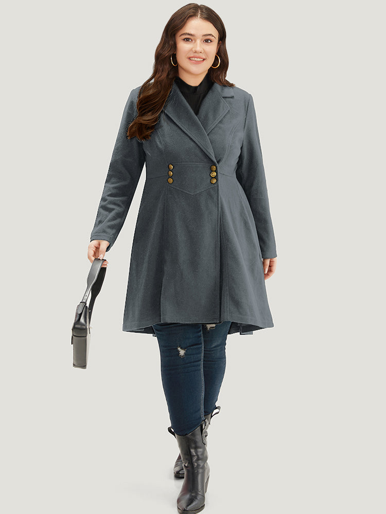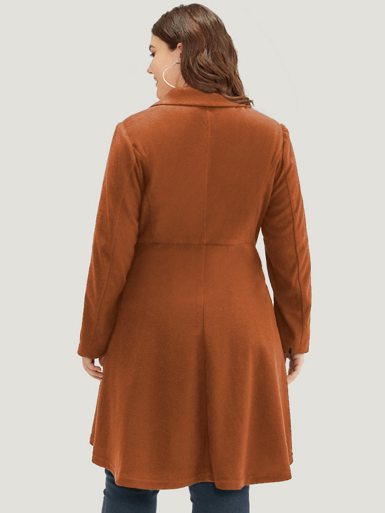 Solid Lapel Collar Double Breasted Coat
